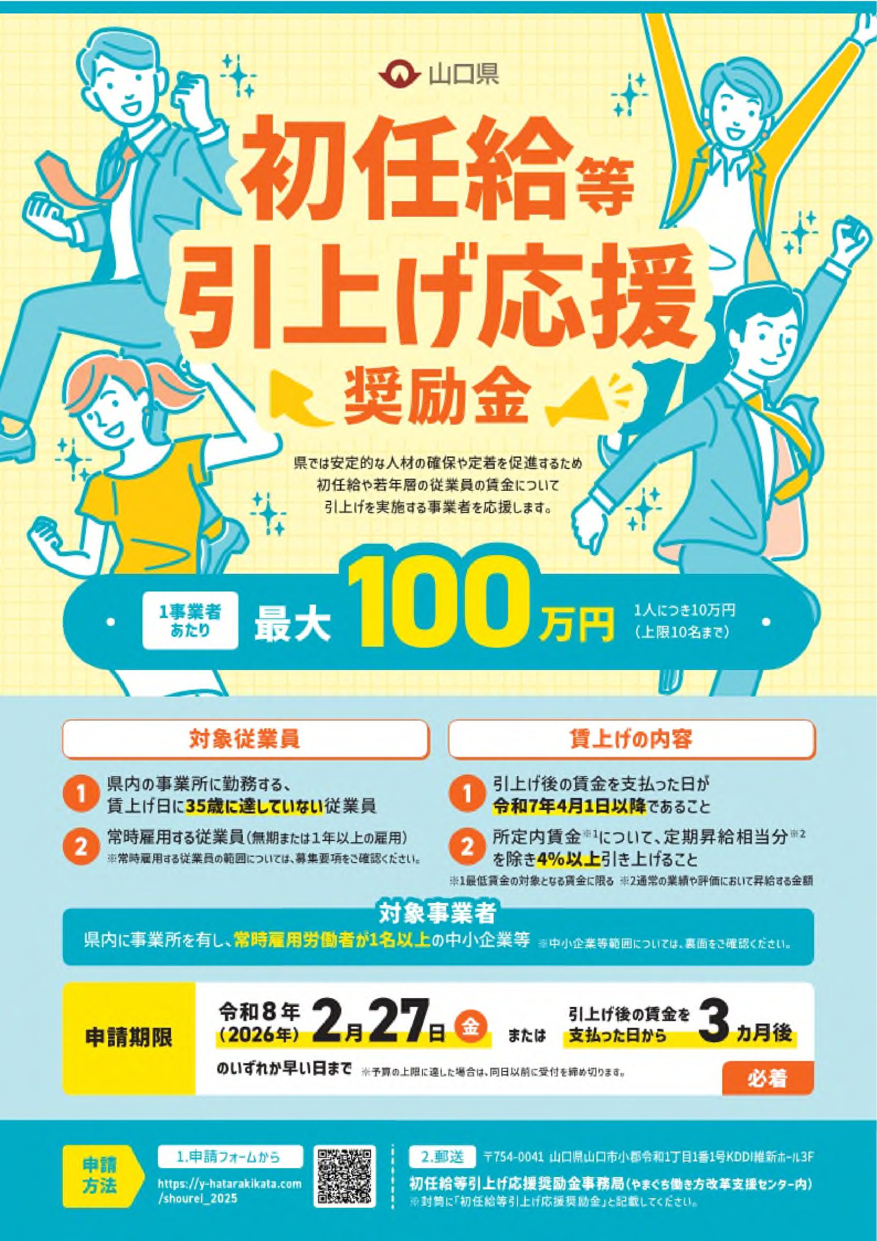 詳しくは初任給等引上げ応援奨励金について(山口県ホームページ)をご覧ください